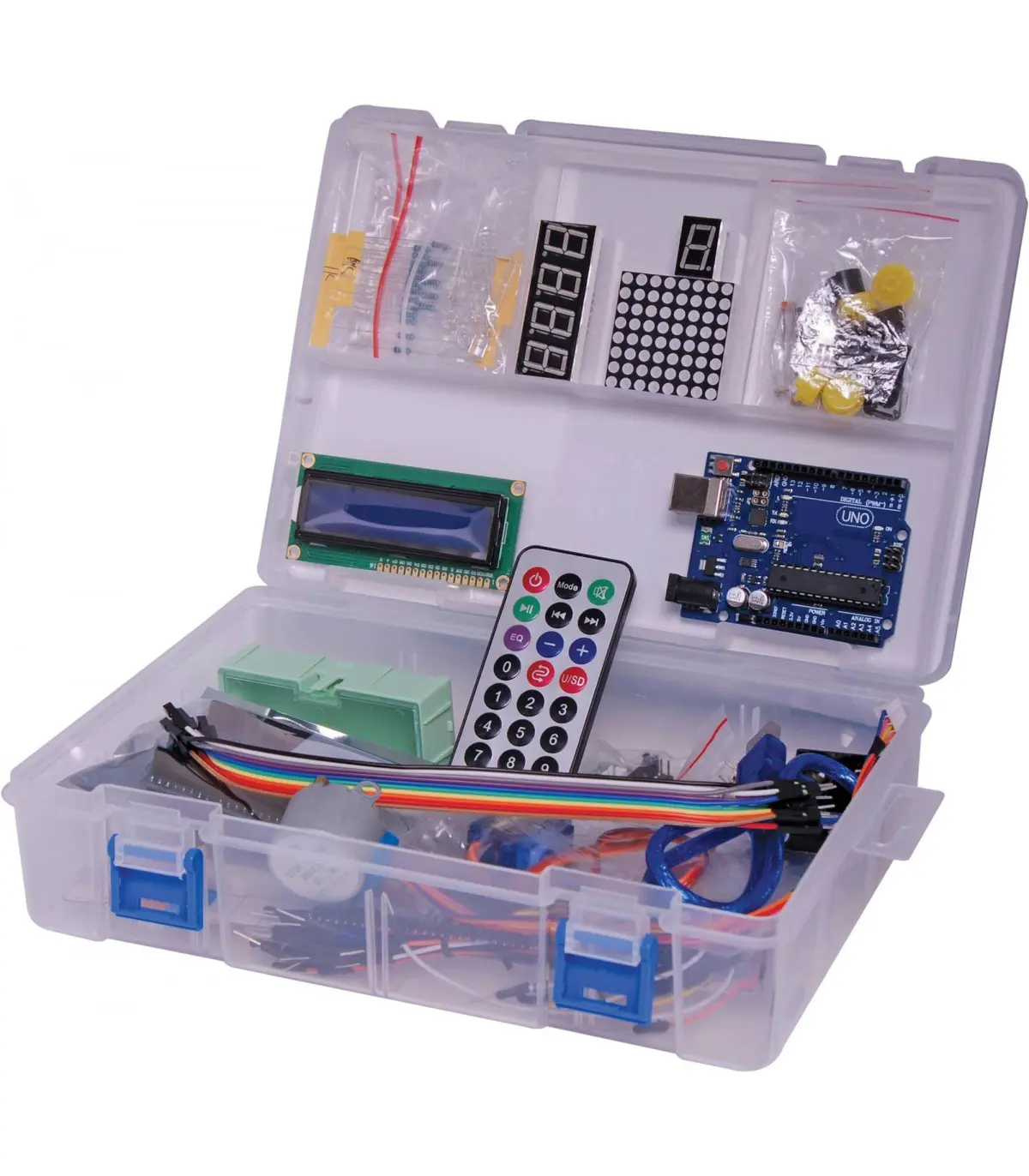 کیت آموزشی آردوینو برای مبتدیان یک محصول کامل و کاربردی برای شروع یادگیری مفاهیم برنامهنویسی، الکترونیک و رباتیک است. این محصول در فروشگاه علم کالا و سایر سایتهای فروش محصولات علمی به عنوان یک اسباب بازی علمی و آموزشی عرضه میشود. با داشتن این کیت، شما میتوانید از سطح پایه شروع کرده و به اجرای پروژههای پیشرفته در حوزه هوش مصنوعی و اینترنت اشیا برسید.